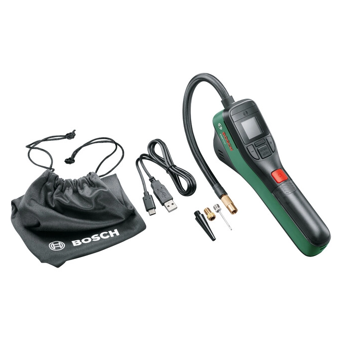 La Bomba BOSCH EasyPump es una magnífica bomba a batería, portátil, de pequeñas dimensiones y gran rendimiento. EasyPump es la bomba de presión de BOSCH para todo lo que necesites hinchar hasta 10,3 bar. Su diseño compacto hace que sea fácil de llevar a cualquier lado. La medición en tiempo real y la función de selección de presión dan unos resultados precisos. No se detiene hasta alcanzar la presión establecida y se apaga automáticamente cuando llega al final de su objetivo. La bomba cuenta con una interfaz clara y sencilla visible en una pantalla espaciosa y legible durante el día. Además cuenta con una luz LED brillante de Bosch que asegura que el área de la válvula esté siempre iluminada.La manguera premium tiene una cubierta textil y un acoplador de metal roscado, lo suficientemente pequeño como para alcanzar válvulas en espacios estrechos. La manguera acoplable de 20 cm se puede girar 360 °.El EasyPump puede inflar todo tipo de llantas, tanto de bicicleta como de coche o moto, pelotas e incluso pequeños artículos para deportes acuáticos. Todos sus adaptadores se almacenan en la misma bomba en un compartimento especial. Inflar nunca ha sido tan fácil!!